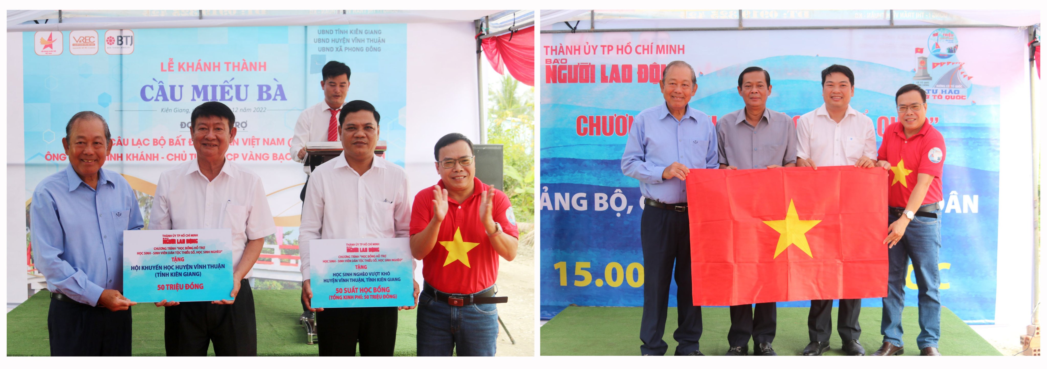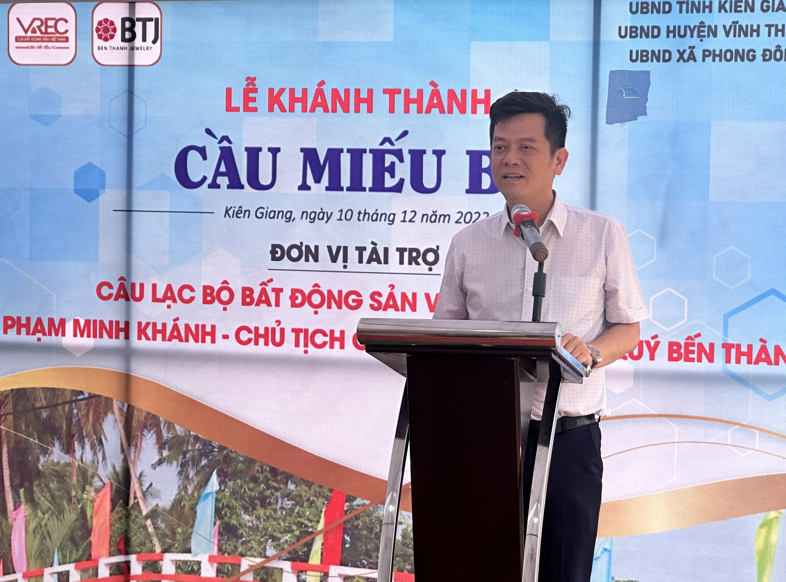 Chia sẻ tại buổi lễ Khánh Thành, ông Nguyễn Quốc Bảo - Chủ tịch Câu lạc bộ Bất Động Sản Việt Nam chia sẻ: “Hoạt động xây cầu từ thiện là chương trình đầy tâm huyết của CLB với tôn chỉ “Kết nối bờ vui”. Chúng tôi hiểu được giao thông liên lạc, thuận tiện thì giao thương mới phát triển, bà con yên tâm đi lại, trẻ em an toàn đến trường. Hiện trạng cơ sở hạ tầng ở nông thôn khác xa ở thành thị và kết nối đôi bờ cũng như kết nối những giấc mơ còn dang dở, nhiều cây cầu sau khi hoàn thành trong thời gian ngắn giúp người dân kết nối đôi bờ nhằm phát triển kinh tế địa phương nói riêng và phát triển tỉnh Kiên Giang nói chung”.