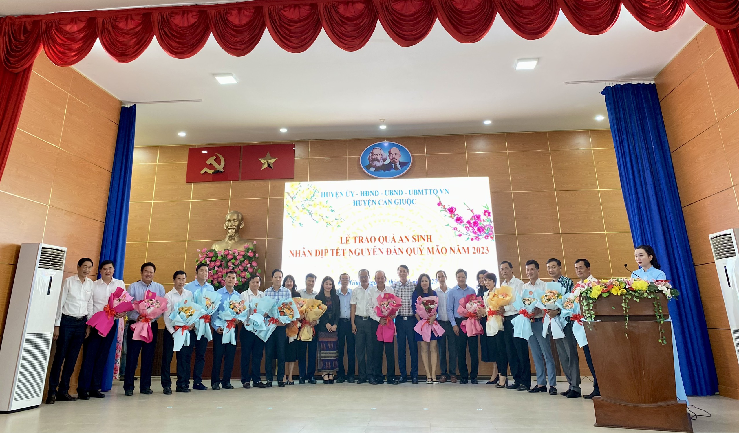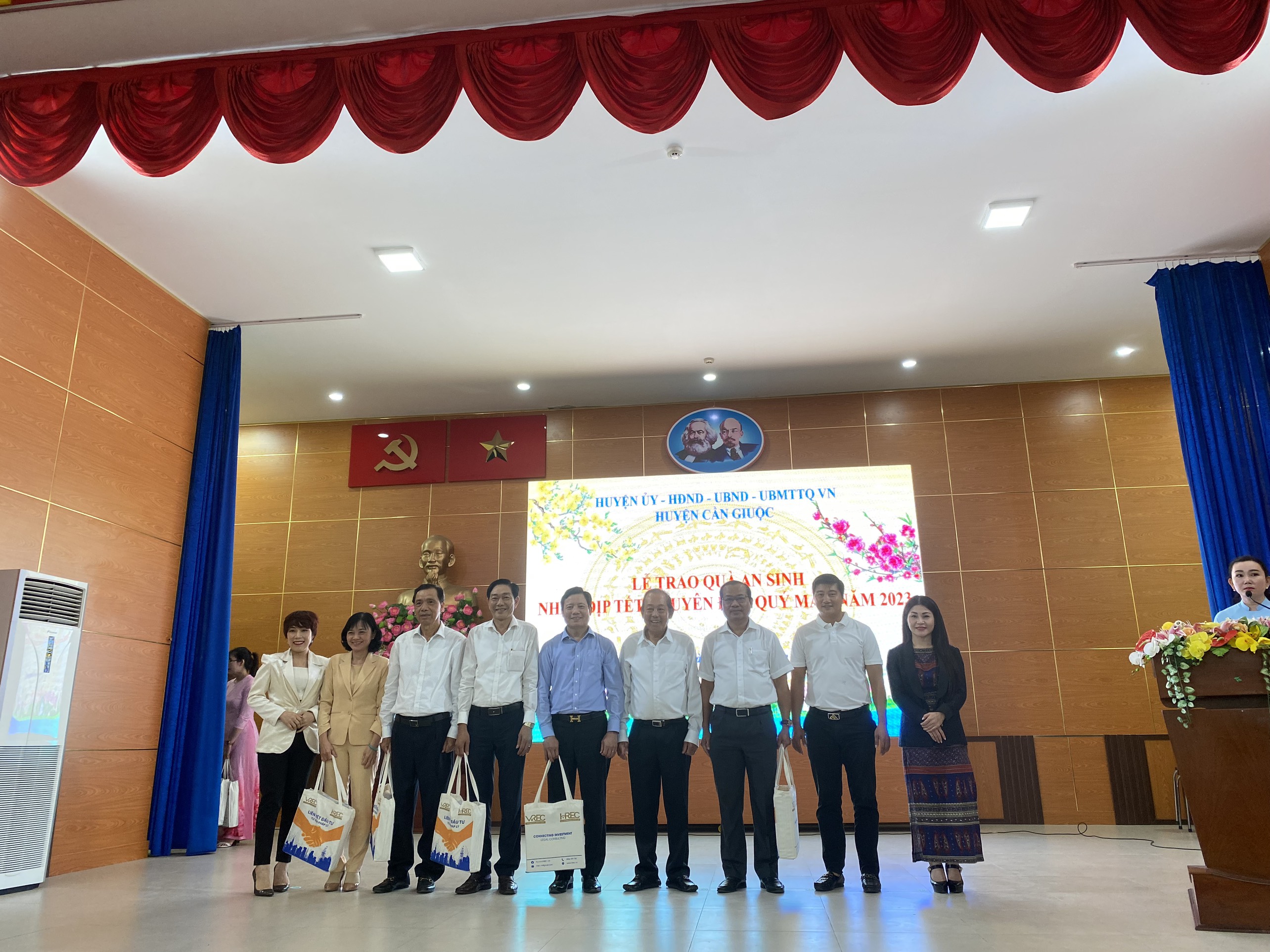 Tại buổi lễ, Bà Trương Minh Kiều – Chủ tịch UBND Quận 5, Tp.HCM và Công ty (Cty) sữa VP Milk đã hỗ trợ, trao tặng 200 phần quà, mỗi phần trị giá 1.000.000 đồng, Cty dầu khí hóa chất Đông Nam trao 300 phần quà trị giá 240.000.000 đồng, Cty TNHH MTV Kỹ thuật – Xây dựng – Môi trường Nhật Nam tặng 115 thẻ BHYT cho gia đình chính sách, hộ nghèo, hộ có hoàn cảnh khó khăn và lực lượng nồng cốt trên địa bàn huyện. Bí thư Huyện ủy Cần Giuộc - Trương Thanh Liêm cho biết: “Thời gian qua, Đảng bộ, Chính quyền và Nhân dân huyện Cần Giuộc đã có nhiều nỗ lực trong việc chăm lo phát triển kinh tế - xã hội, từng bước nâng cao đời sống của Nhân dân. Tuy nhiên do ngân sách của huyện còn hạn chế, sự quan tâm, chia sẻ của các tổ chức, cá nhân trong và ngoài nguyện là rất ý nghĩa và đáng trân trọng. Đồng chí Bí thư Huyện ủy cảm ơn sự đồng hành, chia sẻ của các doanh nghiệp, tổ chức, cá nhân trong thời gian qua đã cùng với địa phương thực hiện tốt công tác an sinh xã hội cũng như các hoạt động phát triển kinh tế xã hội. Trước thềm năm mới, đồng chí chúc các gia đình đón tết vui tươi, đầm ấm, tiếp tục phát triển kinh tế gia đình, từng bước vươn lên ổn định cuộc sống. Dịp này, hội doanh nhân trẻ tỉnh Long An, chi hội doanh nhân trẻ huyện Cần Giuộc hỗ trợ 250.000.000 đồng, CTCP vàng bạc đá quý Bến Thành hỗ trợ 200.000.000 đồng, Công ty cổ phần Long Hậu hỗ trợ 100.00.000 đồng, CTCP môi trường Tân Thiên Nhiên, Công ty xây dựng Hưởng Thanh Bình, Công ty khai thác và quản lý khu công nghiệp Đặng Huỳnh, Ngân hàng Agribank chi nhánh đông Long An, nhóm doanh nghiệp nhựa Phước Lý hỗ trợ tổng số tiền 250.000.000 đồng để chăm lo cho các đối tượng nhân dịp Xuân Quý Mão 2023.