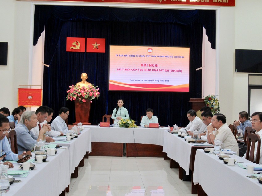 Sáng nay 03.03.2023, tại trụ sở Uỷ ban MTTQ Việt Nam TPHCM tổ chức hội nghị lấy ý kiến góp ý dự thảo Luật Đất đai (sửa đổi).
