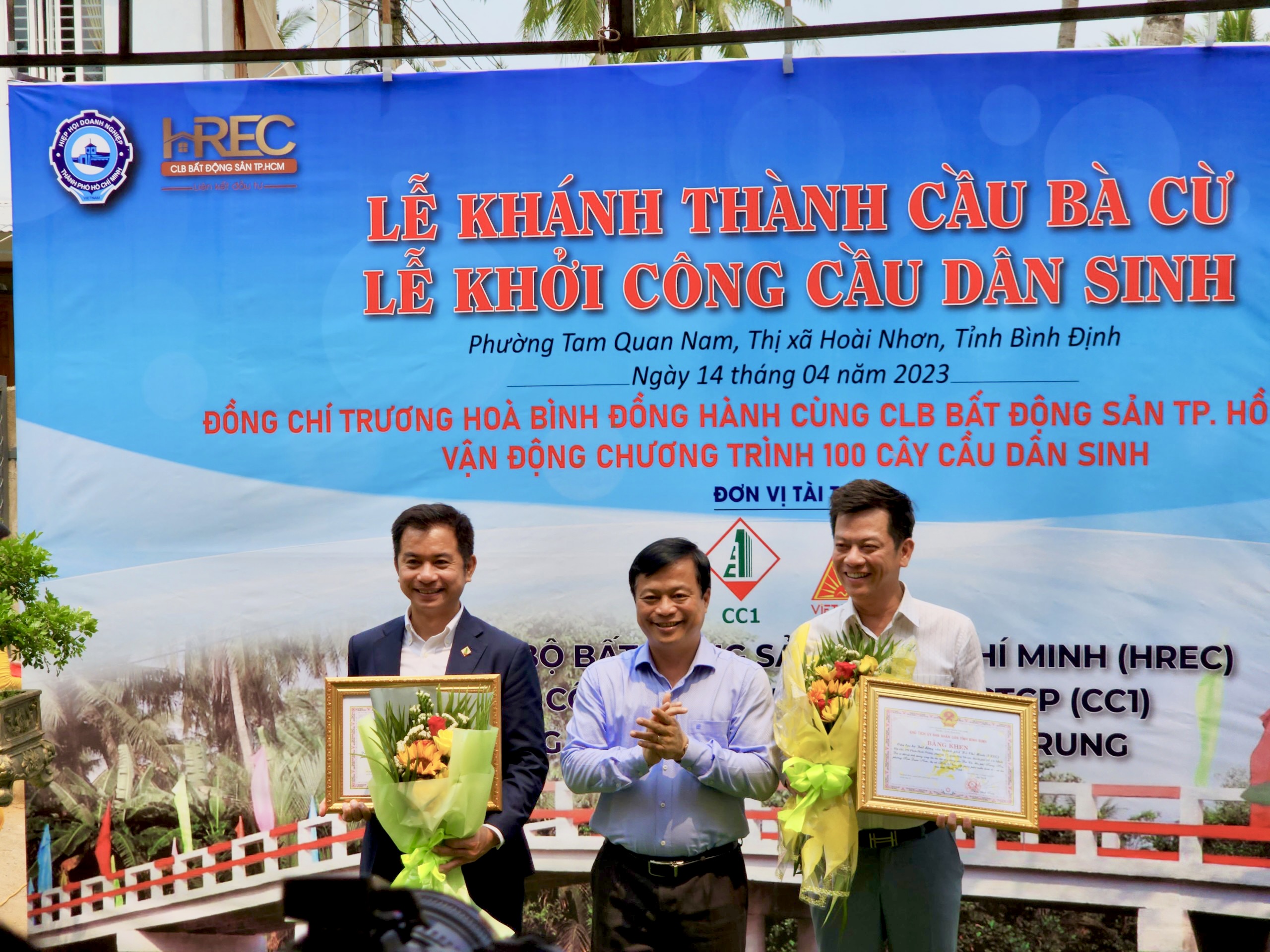 Sáng nay ngày 14.04.2023, Đoàn Câu lạc bộ Bất động sản TP.Hồ Chí Minh (HREC) đã tổ chức “KHÁNH THÀNH CẦU BÀ CỪ & KHỞI CÔNG CẦU DÂN SINH TẠI TỈNH BÌNH ĐỊNH” xây dựng thêm các cây cầu dân sinh tại nông thôn, nhằm góp phần hoàn thiện và đáp ứng nhu cầu đi lại, giao thương của bà con trong vùng, đảm bảo an toàn giao thông mà còn góp phần quan trọng trong việc tạo động lực thúc đẩy kinh tế-xã hội của xã nhà nói riêng và khu vực xung quanh nói chung ngày một phát triển.