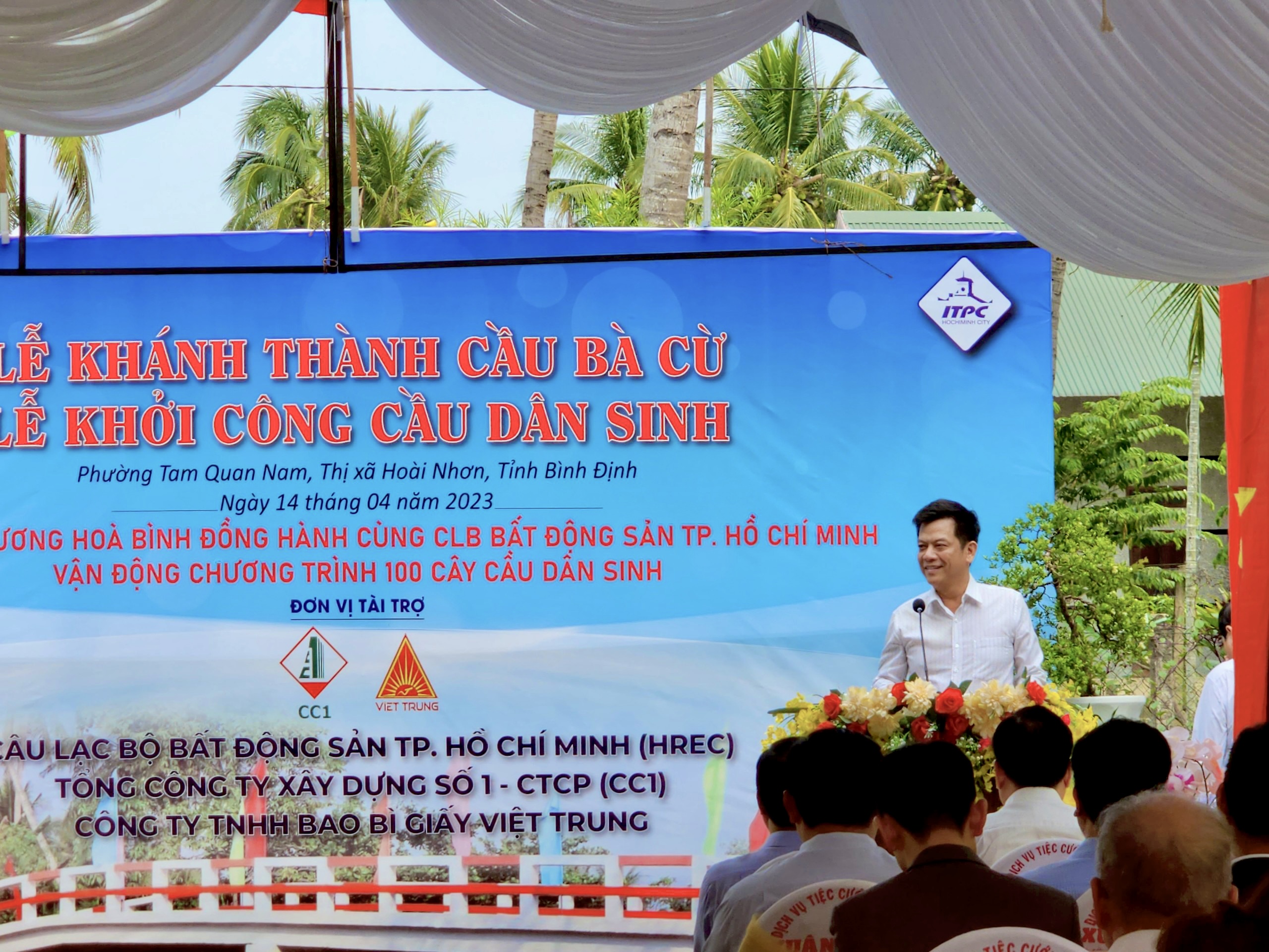 Chia sẻ tại buổi lễ Khởi Công, ông Nguyễn Quốc Bảo - Chủ tịch Câu lạc bộ Bất Động Sản TP.HCM chia sẻ: “Hoạt động xây cầu từ thiện là chương trình đầy tâm huyết của HREC với tôn chỉ “Kết nối bờ vui”. Chúng tôi hiểu được giao thông liên lạc, thuận tiện thì giao thương mới phát triển, bà con yên tâm đi lại, trẻ em an toàn đến trường. Hiện trạng cơ sở hạ tầng ở nông thôn khác xa ở thành thị và kết nối đôi bờ cũng như kết nối những giấc mơ còn dang dở, nhiều cây cầu sau khi hoàn thành trong thời gian ngắn giúp người dân kết nối đôi bờ nhằm phát triển kinh tế địa phương nói riêng và phát triển tỉnh Bình Định nói chung”.