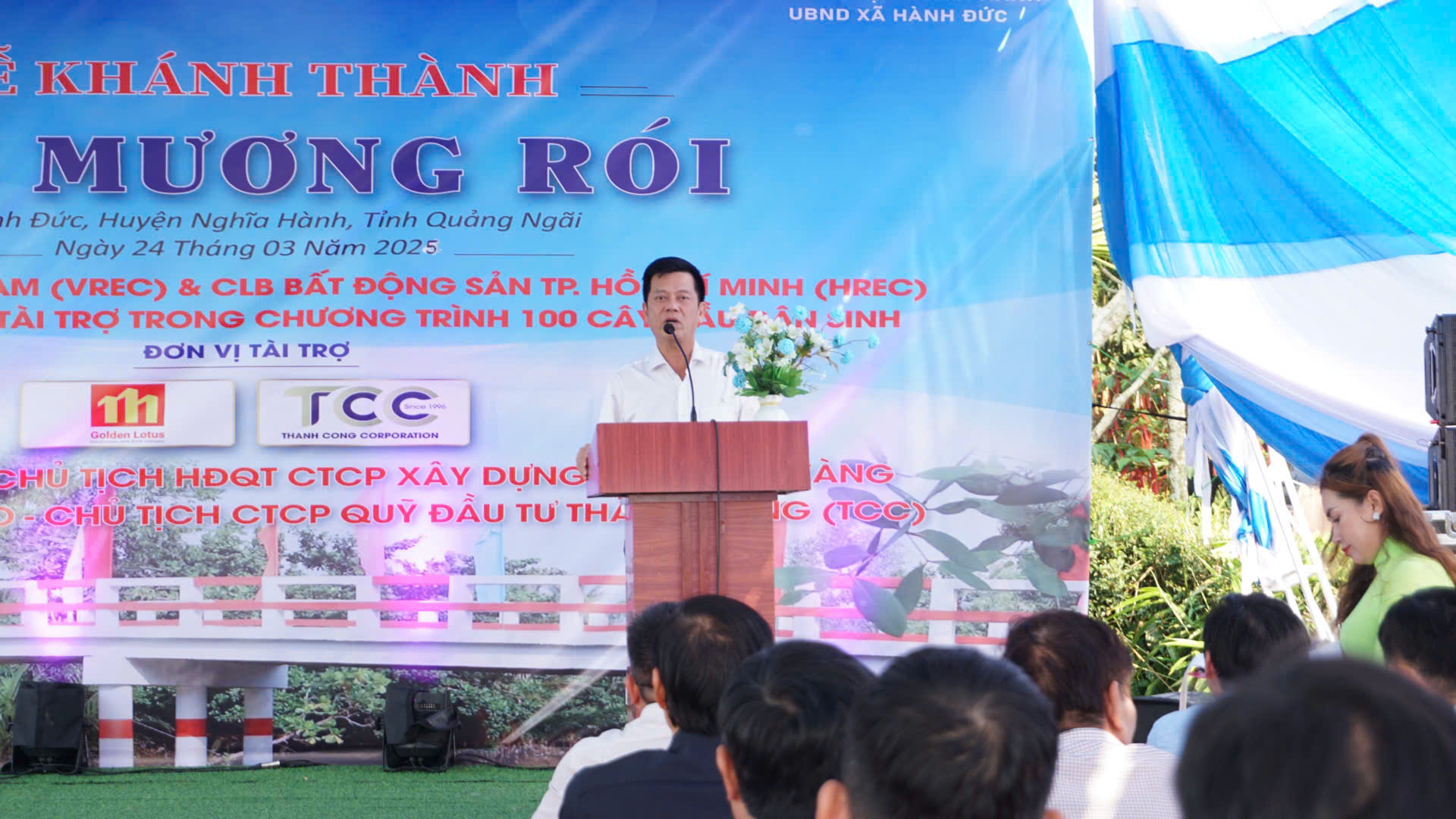 Chiều hôm nay, Đoàn Câu lạc bộ Bất động sản Việt Nam (VREC) và Câu lạc bộ Bất động sản TP. Hồ Chí Minh (HREC) đã tổ chức “KHÁNH THÀNH CẦU MƯƠNG RÓI TẠI XÃ HÀNH ĐỨC, HUYỆN NGHĨA HÀNH, TỈNH QUẢNG NGÃI”, nhằm góp phần hoàn thiện và đáp ứng nhu cầu đi lại, giao thương của bà con trong vùng, đảm bảo an toàn giao thông mà còn góp phần quan trọng trong việc tạo động lực thúc đẩy kinh tế-xã hội của xã nhà nói riêng và khu vực xung quanh nói chung ngày một phát triển.