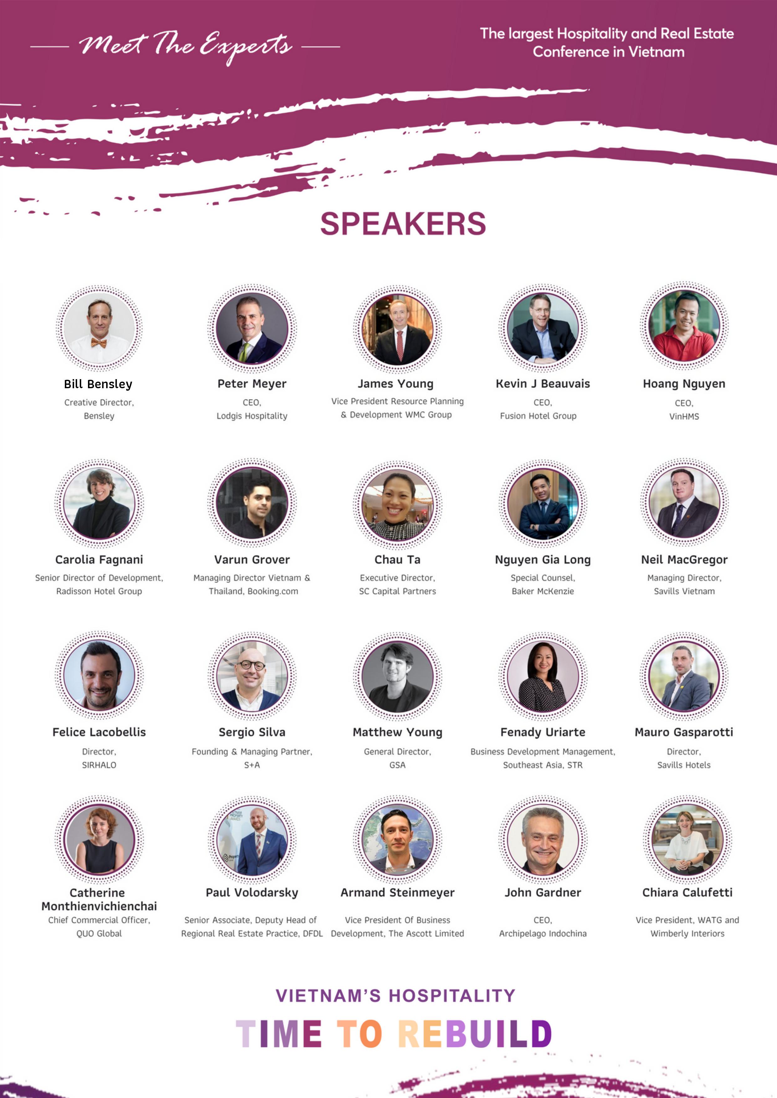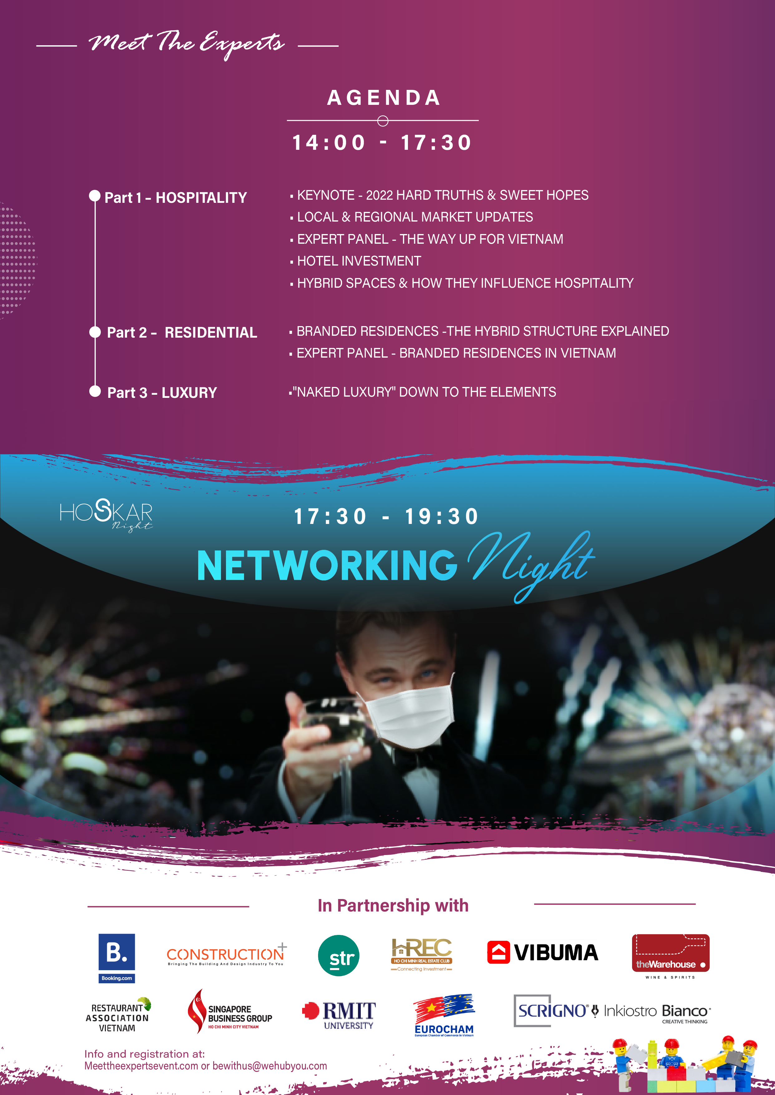 With over 20 international and local speakers, industry experts and leaders will be discussing various topics on Vietnam's Hospitality and Real estate - the way up for recovery, Branded Residences, Hybrid Space, Investment and Design. Exclusive post-event networking session – HoSkar Night will follow from 17:30 PM with F&B show and activities.