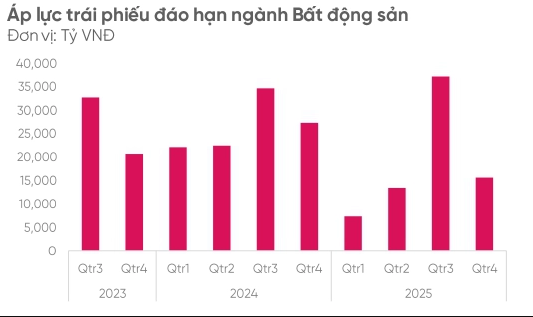 VPBankS Research cho rằng, áp lực thị trường trái phiếu doanh nghiệp bất động sản đã dịu bớt nhờ các biện pháp gia hạn từ Chính phủ, song vẫn còn tồn tại rủi ro cao về tính thanh khoản. Trong 18 tháng tới, áp lực trả nợ vẫn rất lớn, đặc biệt trong quý 3/2023 (32.655 tỷ đồng) và quý 3/2024 (34.632 tỷ đồng).