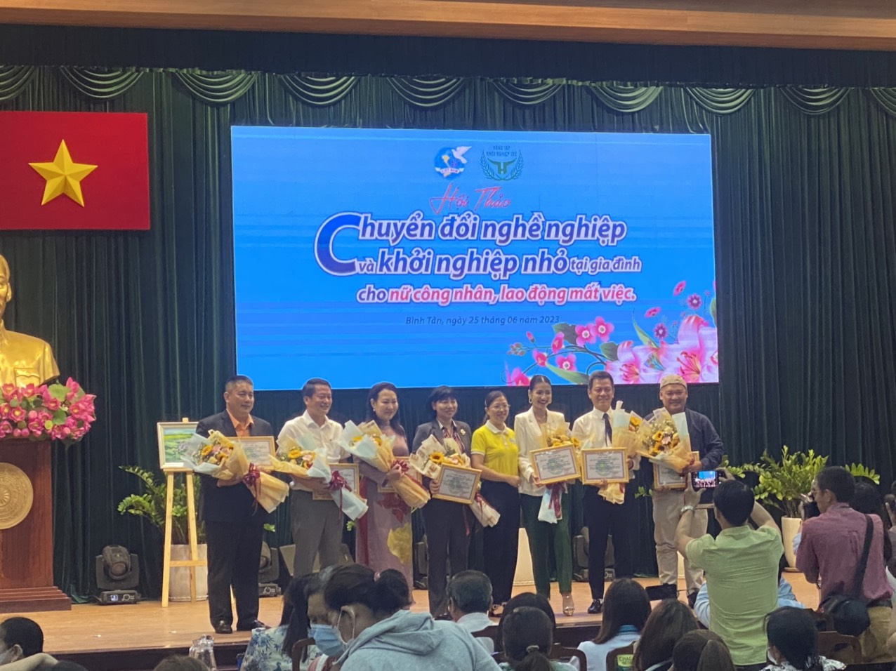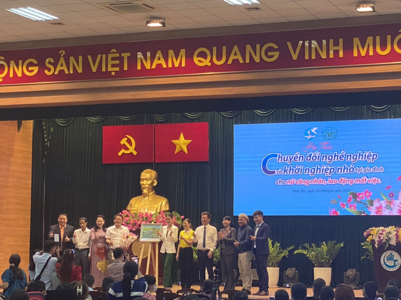 Ngày 25/6/2023 vừa qua, Hội Liên hiệp Phụ nữ quận Bình Tân (TP.HCM) phối hợp dự án "Vòng tay khởi nghiệp trẻ", "Chuyển đổi nghề nghiệp và khởi nghiệp nhỏ tại gia đình cho nữ công nhân, lao động mất việc".