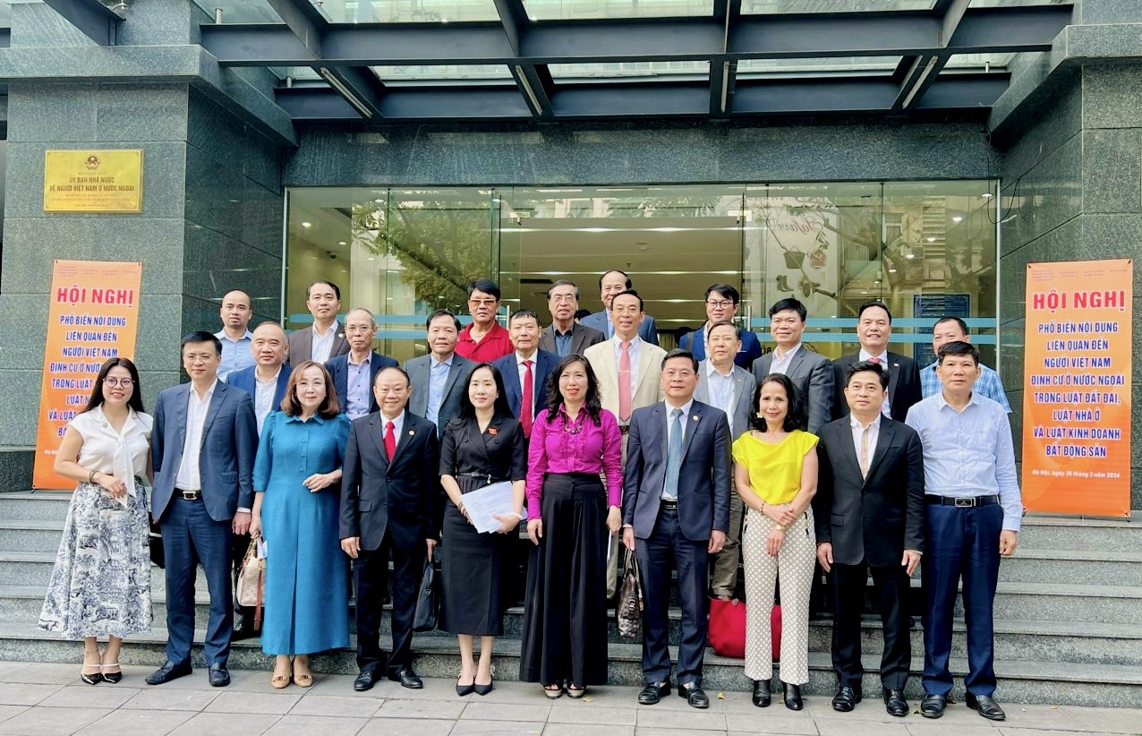 Hội nghị đã nghe đại diện của Ủy ban Kinh tế Quốc hội, các Bộ Tài nguyên và Môi trường, Bộ Xây dựng giới thiệu các điểm mới và những nội dung liên quan trực tiếp đến cộng đồng người Việt Nam ở nước ngoài của Luật Đất đai, Luật Nhà ở và Luật Kinh doanh bất động sản. Theo đó, với các quy định mới này, quyền của người Việt Nam định cư ở nước ngoài bao gồm người có quốc tịch Việt Nam và người gốc Việt Nam đã được quy định cụ thể, rõ ràng và theo hướng mở rộng hơn.