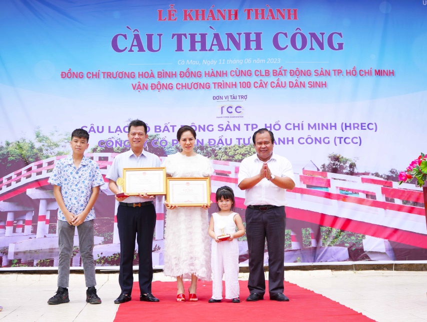 Sáng 11.06.2023, Đoàn Câu lạc bộ Bất động sản Hồ Chí Minh (HREC) đã tổ chức “LỄ KHÁNH THÀNH CẦU THÀNH CÔNG TẠI HUYỆN TRẦN VĂN THỜI TỈNH CÀ MAU” xây dựng thêm các cây cầu dân sinh tại nông thôn, nhằm góp phần hoàn thiện và đáp ứng nhu cầu đi lại, giao thương của bà con trong vùng, đảm bảo an toàn giao thông mà còn góp phần quan trọng trong việc tạo động lực thúc đẩy kinh tế-xã hội của xã nhà nói riêng và khu vực xung quanh nói chung ngày một phát triển.